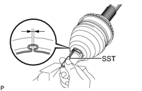 (d) Tighten SST so that the No. 2 rear drive shaft outboard joint boot clamp is pinched.