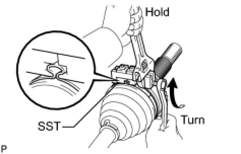 (d) Tighten SST so that the rear drive shaft outboard joint boot clamp is pinched.