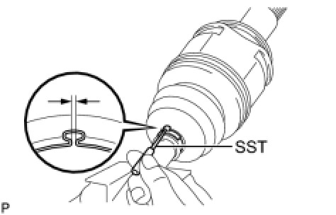 (e) Using SST, measure the clearance of the No. 2 rear drive shaft outboard joint boot clamp.