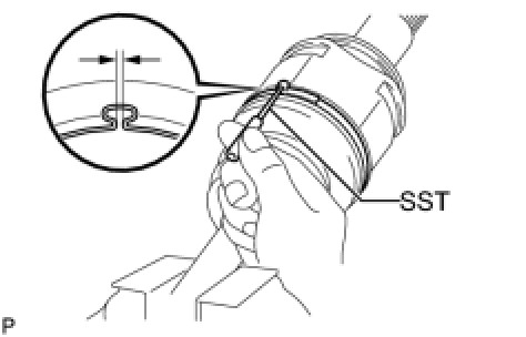 (c) Place SST onto the rear drive shaft outboard joint boot clamp.