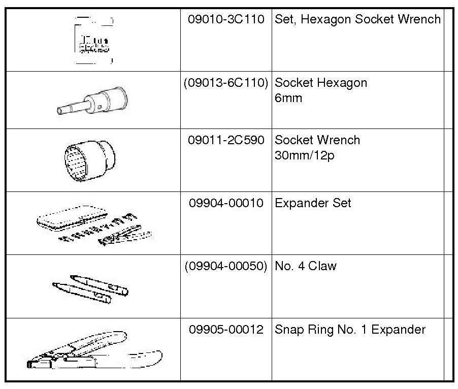 PREPARATION: DRIVE SHAFT / PROPELLER SHAFT: RECOMMENDED TOOLS
