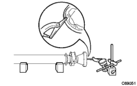 (c) Using a dial indicator, inspect the rear side of universal joint flange runout in the vertical direction.