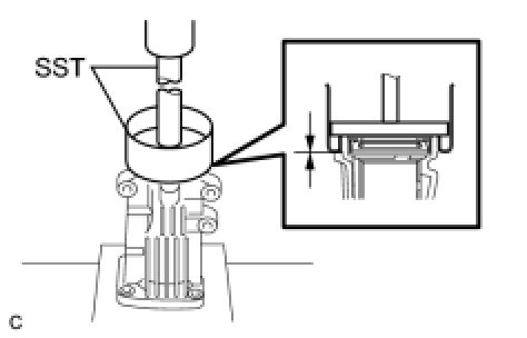 (a) Using SST and a press, press in the extension housing dust deflector until it contacts the installation surface as shown in the illustration.