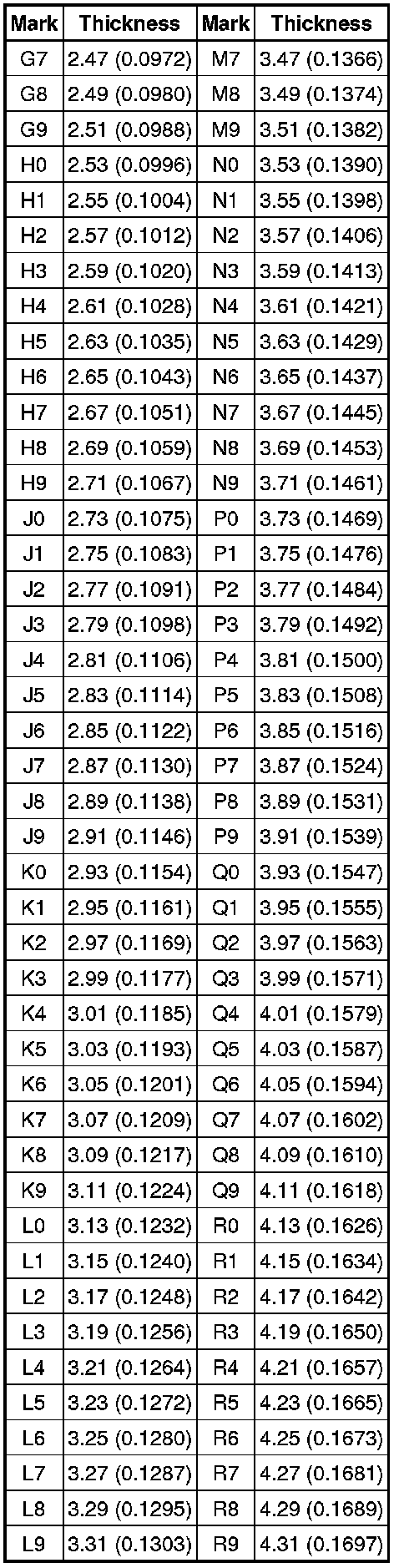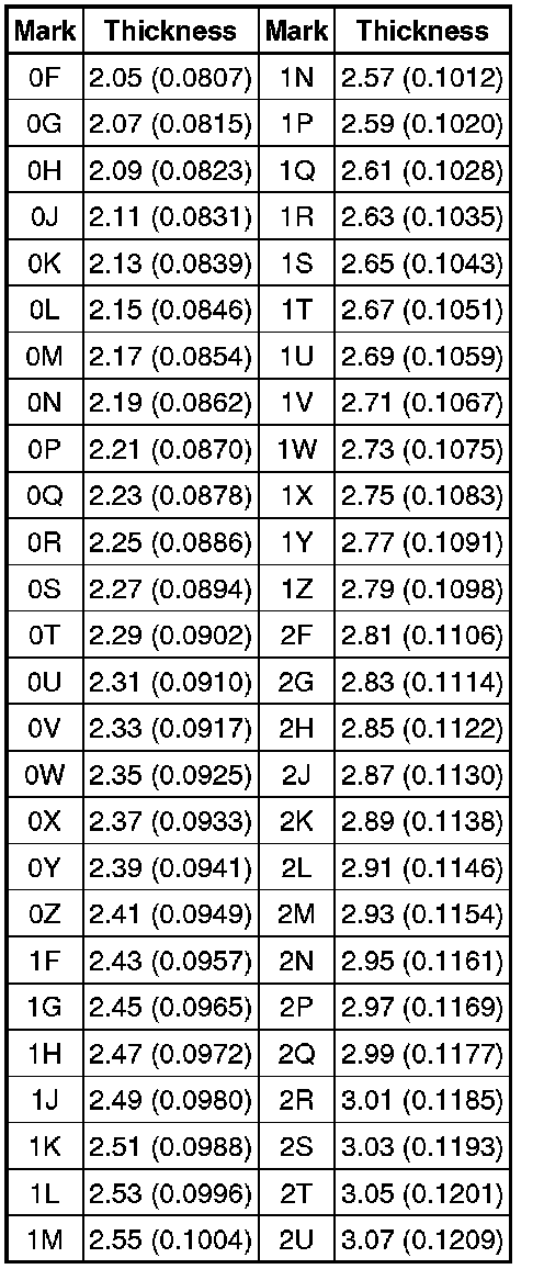 0.14 to 0.25 mm (0.00551 to 0.00984 in.)