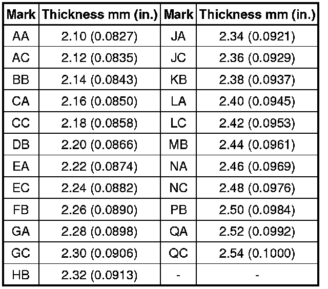 (b) If the backlash is outside the specified range, select a ring gear mounting case bearing LH side washer from the table and install it to meet the specified range.