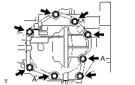 (d) Clean and degrease the 2 bolts (A) and the installation hole in the transfer case.