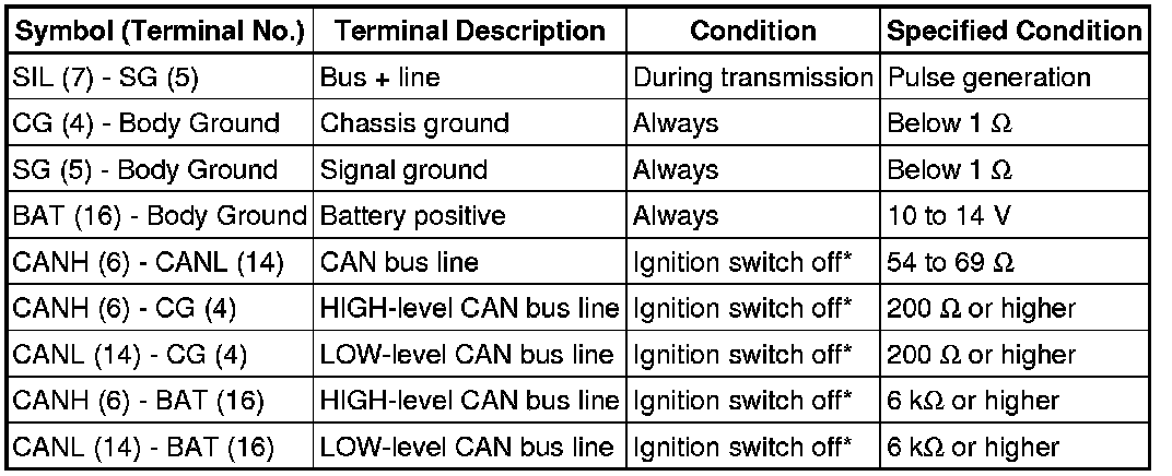*: Before measuring the resistance, leave the vehicle as is for at least 1 minute and do not operate the ignition switch, other switches or the doors.