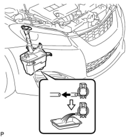 (a) Disconnect the washer hose from the windshield washer motor and pump assembly, and drain the washer fluid.