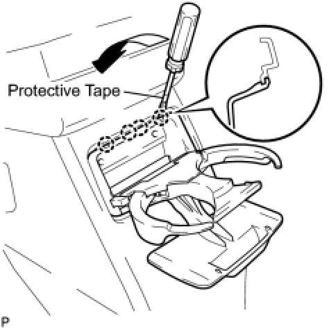 (b) Using a screwdriver, disengage the 4 claws and remove the front console box cup holder sub-assembly.
