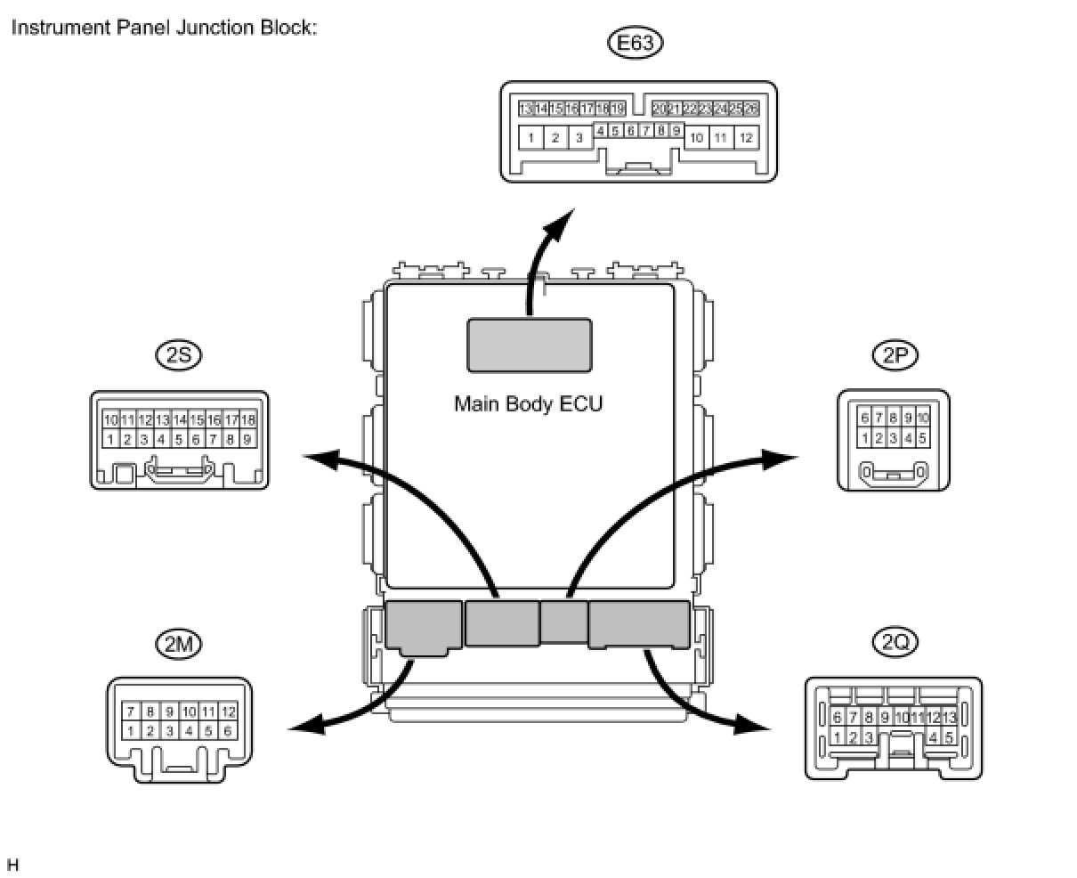 (c) Reconnect the main body ECU and instrument panel junction block connectors.