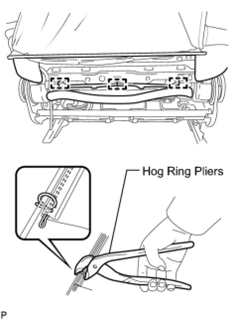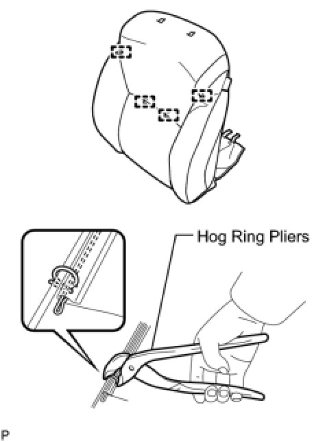 (a) Using hog ring pliers, install the separate type front seat cushion cover with 10 new hog rings.