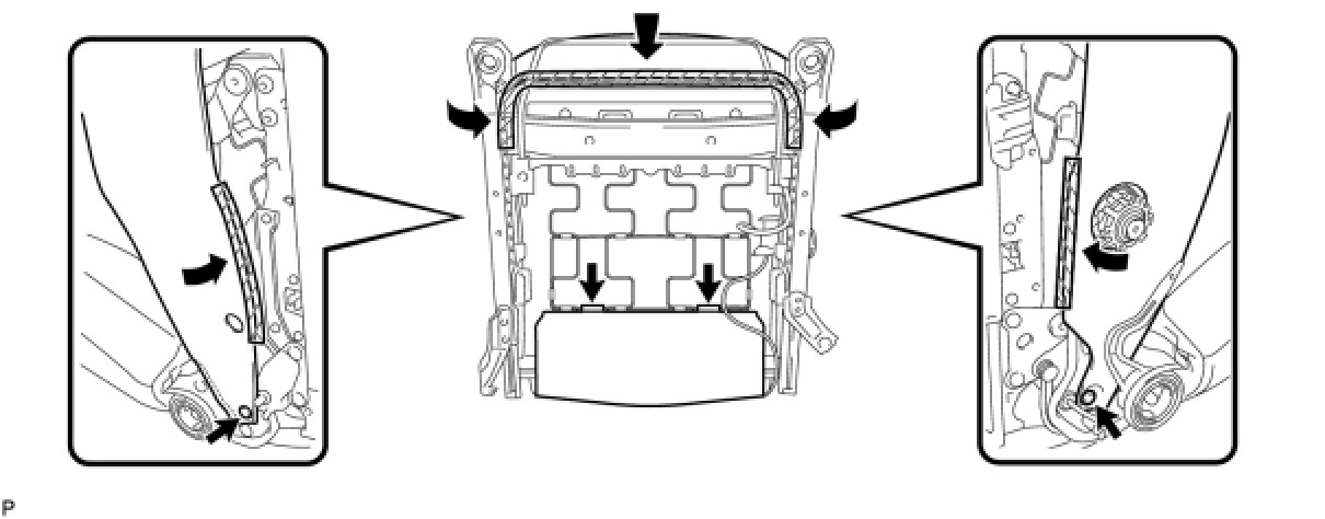 (a) Insert the guide and temporarily install the front seat cushion inner shield as shown in the illustration.