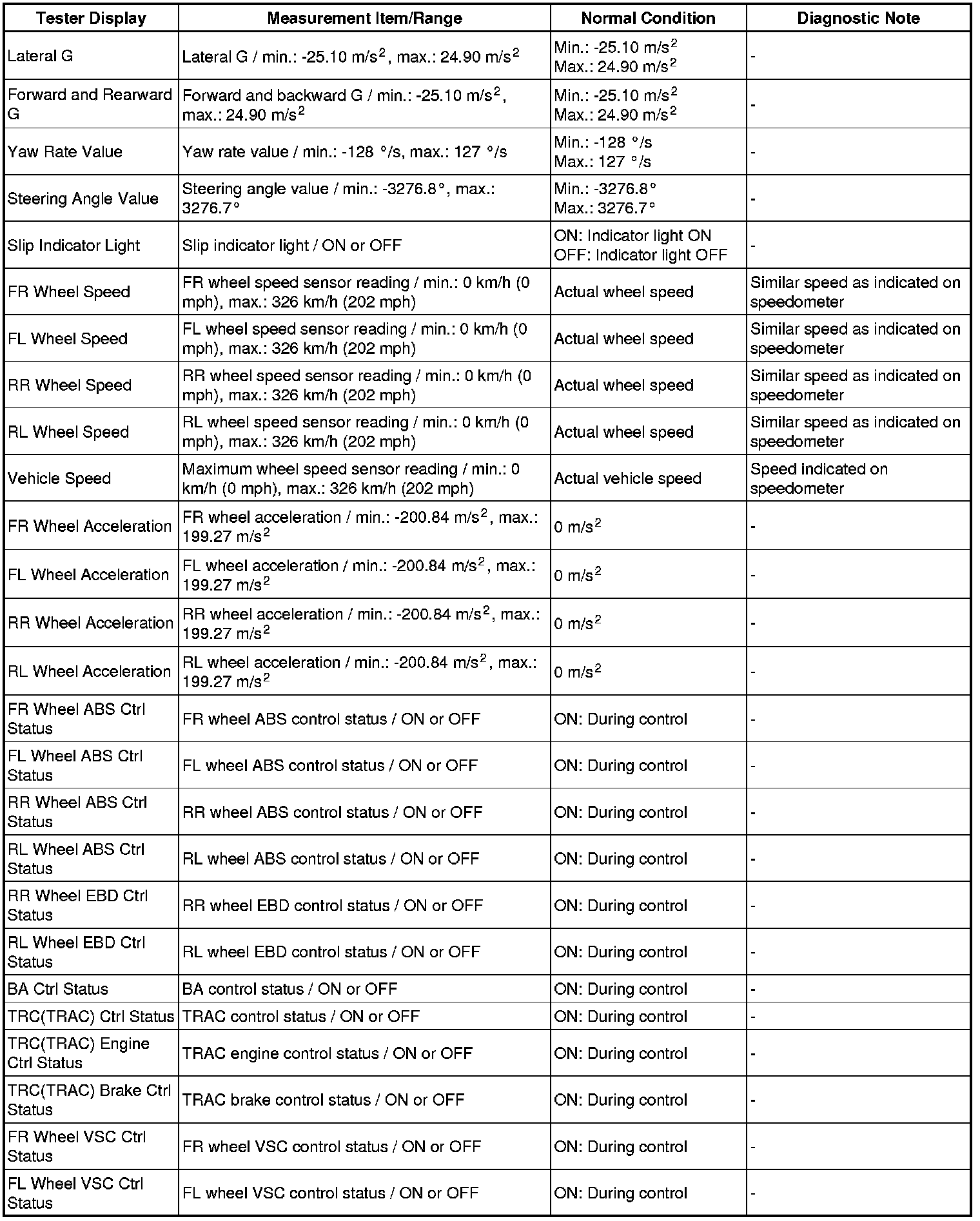 BRAKE CONTROL / DYNAMIC CONTROL SYSTEMS: VEHICLE STABILITY CONTROL SYSTEM (for 2ZR-FE): DATA LIST / ACTIVE TEST