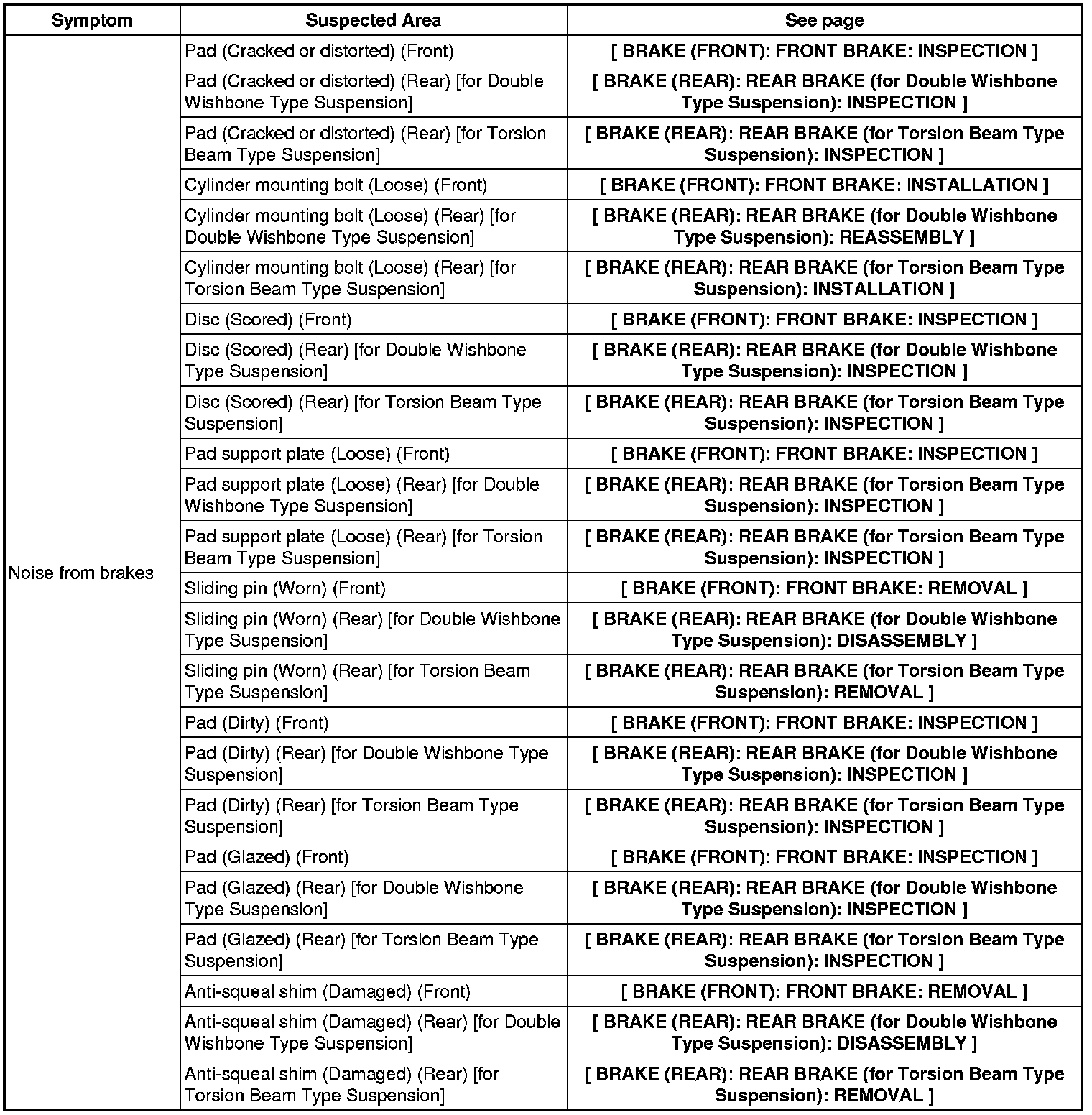 BRAKE SYSTEM (OTHER): BRAKE SYSTEM: PROBLEM SYMPTOMS TABLE