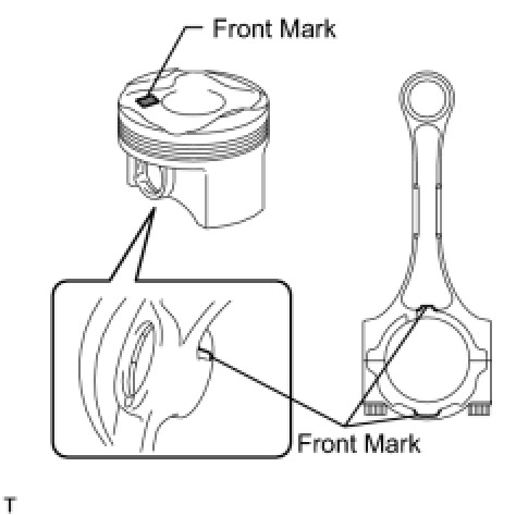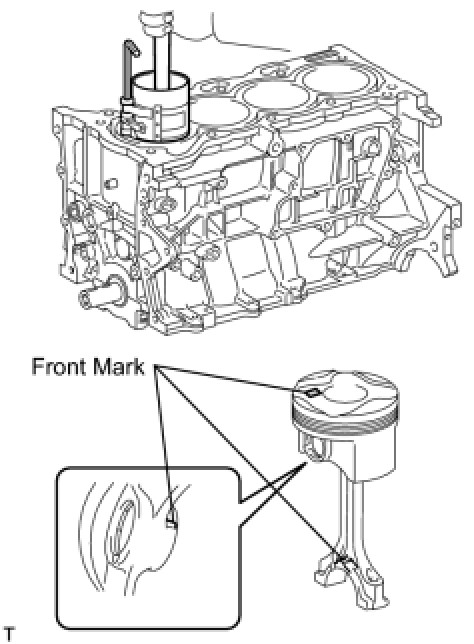 (c) Align the front marks of the piston and connecting rod, and push in the piston by hand.