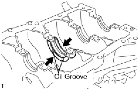 (1) Install the upper bearing with an oil groove on the cylinder block.