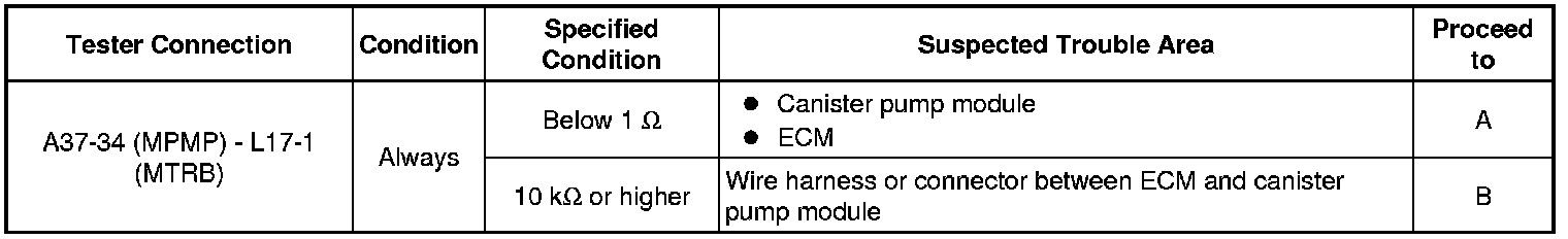 B -- INSPECT CANISTER PUMP MODULE (POWER SOURCE FOR VENT VALVE)