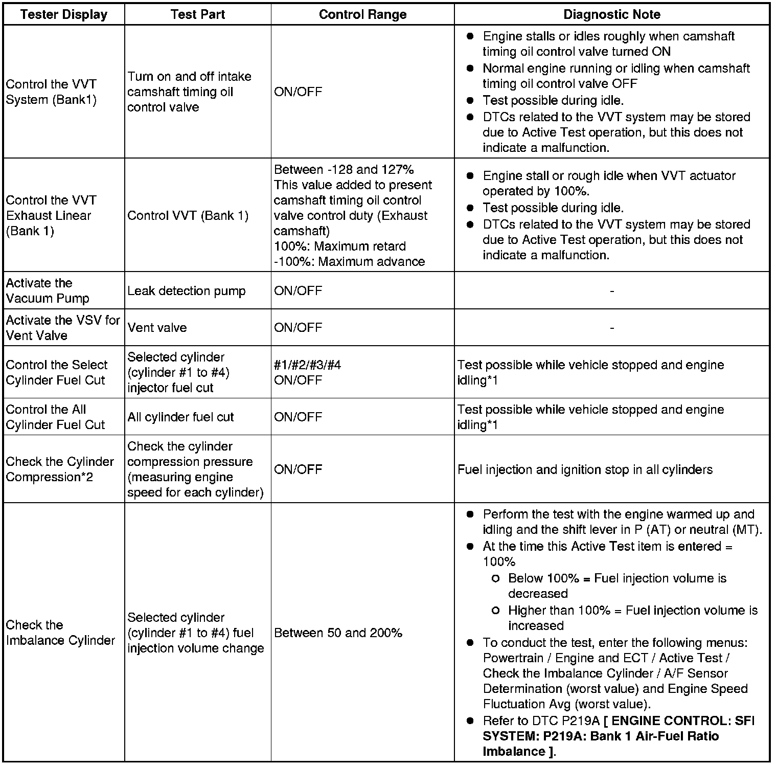 * *2: Values are only displayed when performing the Active Tests: Control the VVT System (Bank 1), Control the VVT Linear (Bank1) and Control the Exhaust Liner (Bank 1). For other Active Tests, the value will be 0.