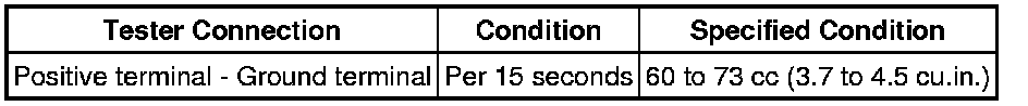 (7) Connect SST (wire) to the injector assembly and the battery for 15 seconds, and measure the injection volume with the graduated cylinder. Test each injector 2 or 3 times.