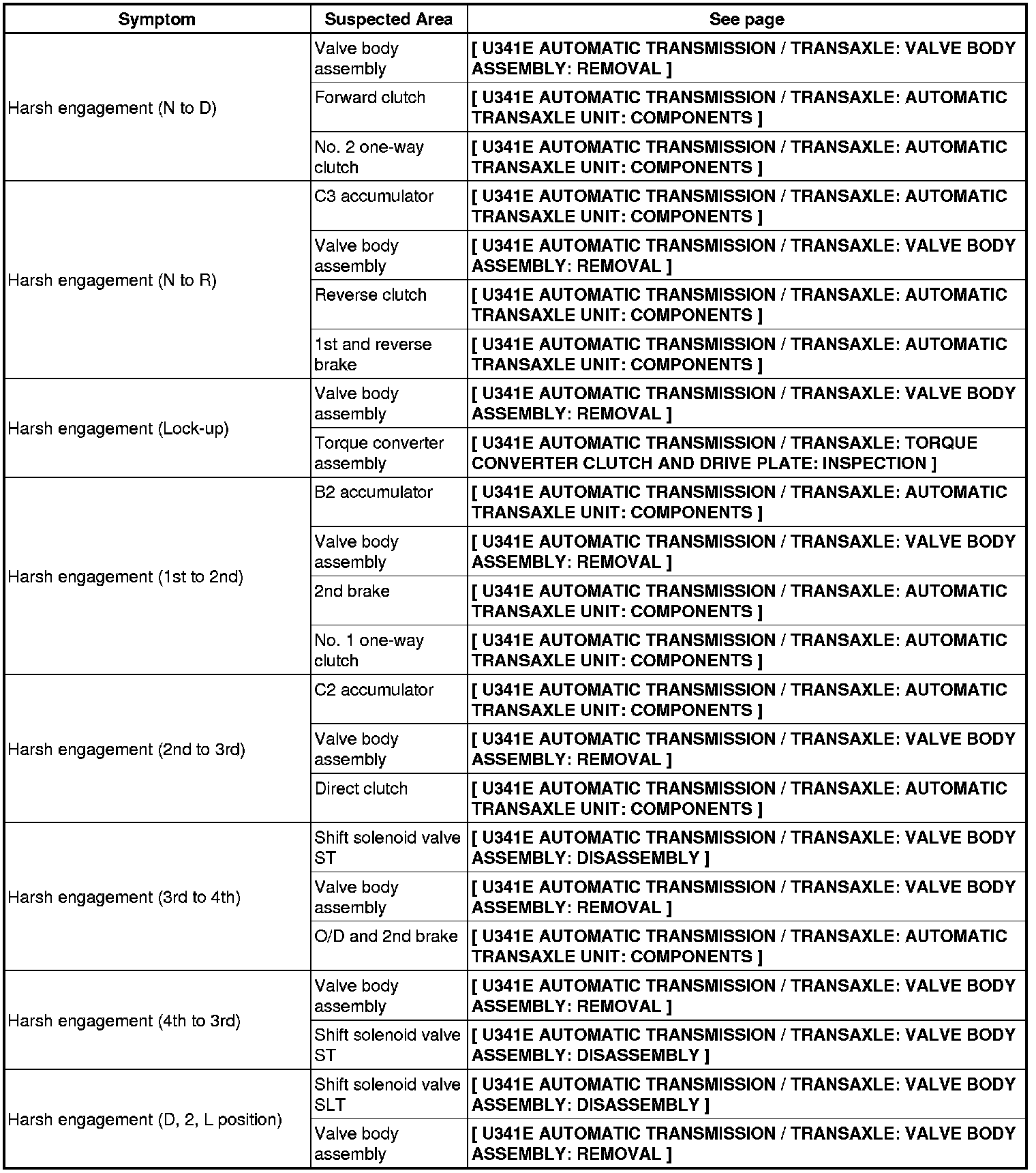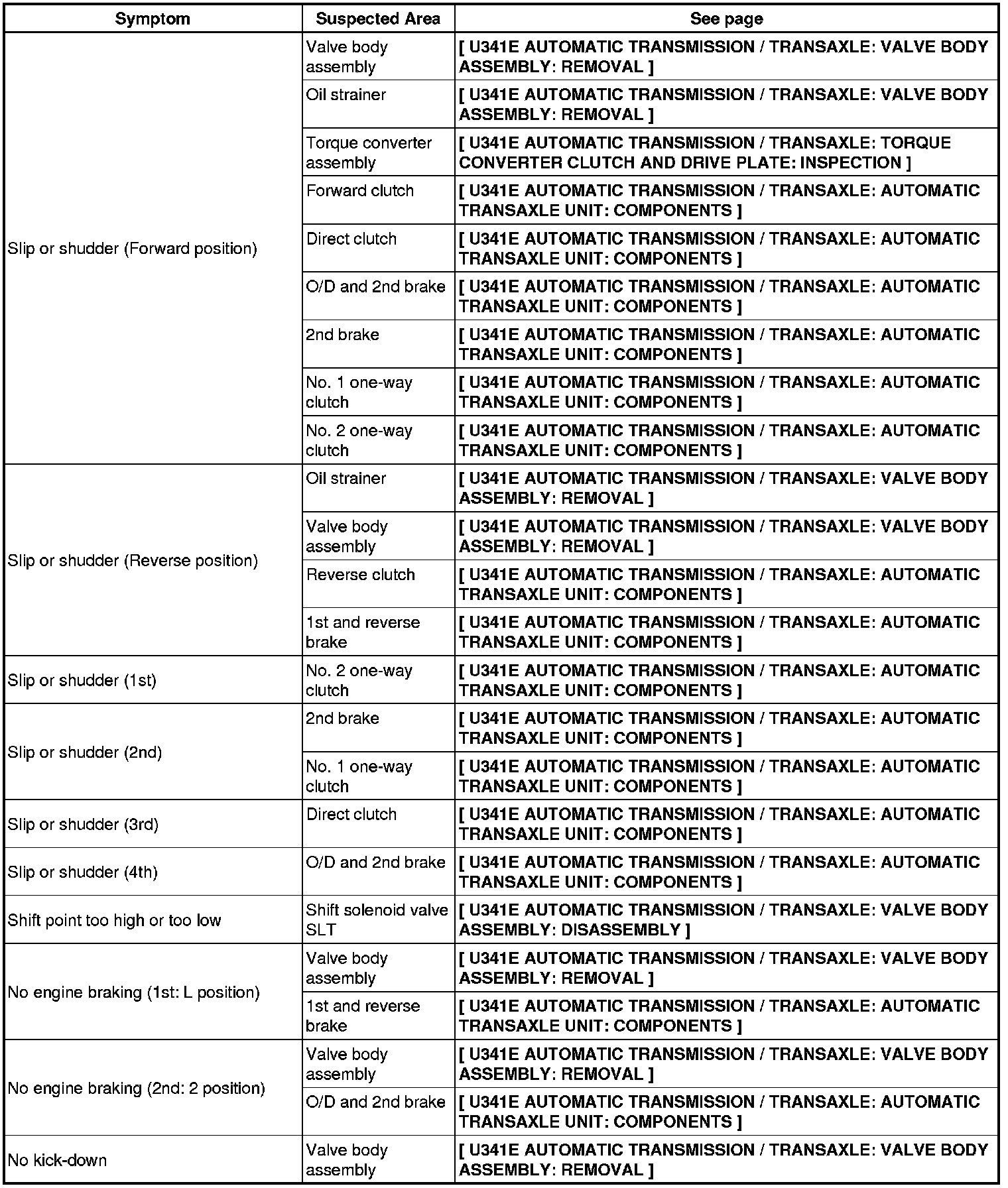 U341E AUTOMATIC TRANSMISSION / TRANSAXLE: AUTOMATIC TRANSAXLE SYSTEM: PROBLEM SYMPTOMS TABLE