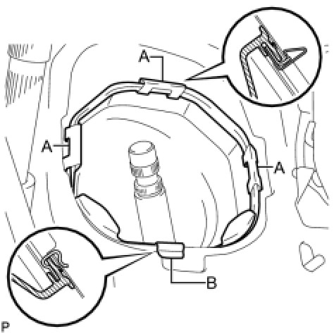 (a) Engage clip B onto the body and install the No. 1 steering column hole cover sub-assembly onto the body with clips A.