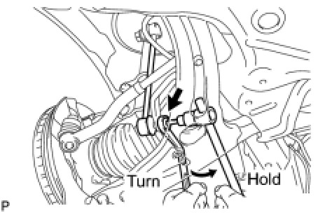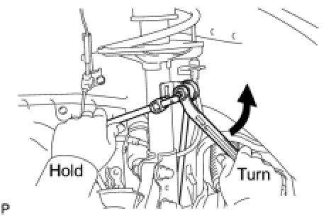 If the ball joint turns together with the nut, use a hexagon wrench (6 mm) to hold the stud bolt.