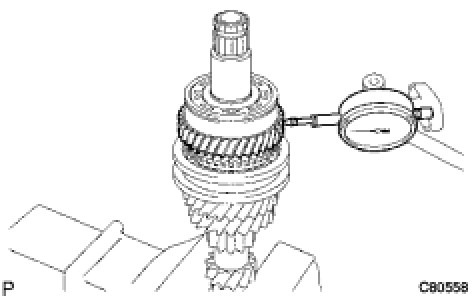 (a) Using a dial indicator, measure the 4th gear radial clearance between the gear and shaft.
