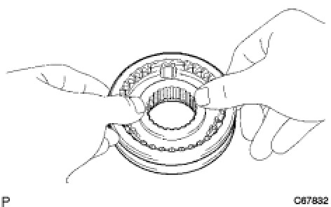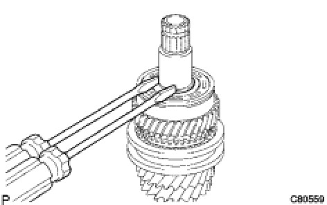 (a) Remove the 4th gear synchronizer ring from the No. 2 transmission clutch hub.