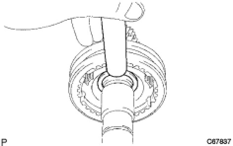 (c) Using a brass bar and a hammer, install the snap ring onto the input shaft.