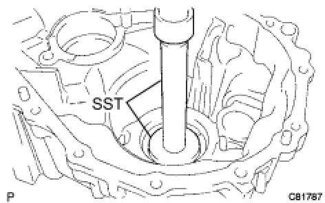 (a) Using SST and a hammer, remove the transaxle case oil seal from the transaxle case.