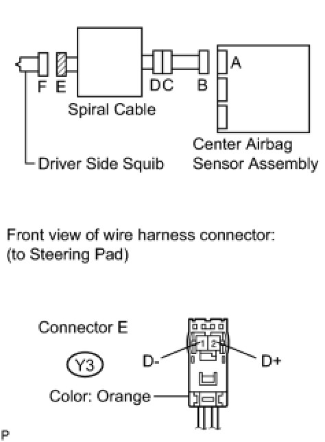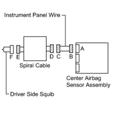 * The driver side squib circuit consists of the center airbag sensor assembly, the spiral cable and the steering pad.