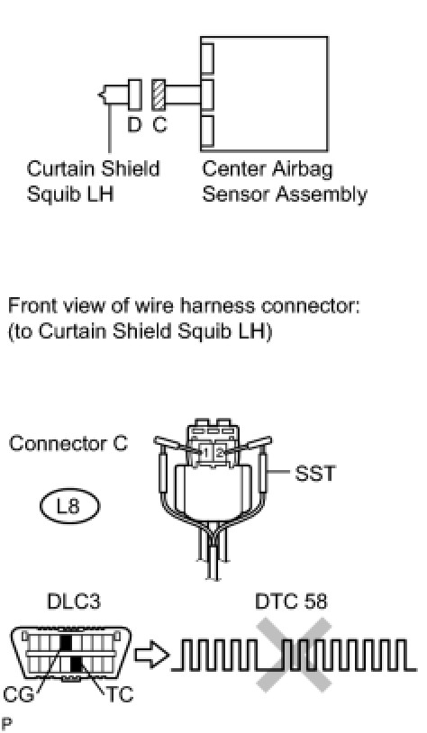 (c) Check that the connectors are properly connected to the curtain shield airbag assembly LH and center airbag sensor assembly.