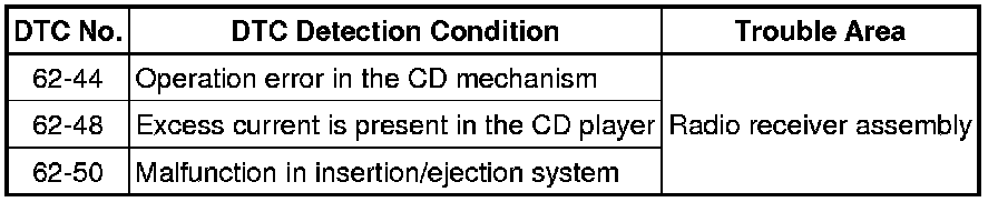 AUDIO / VIDEO: AUDIO AND VISUAL SYSTEM: 62-44, 62-48, 62-50: CD Abnormal