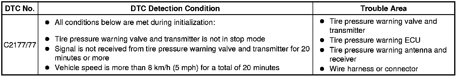 TIRE PRESSURE MONITORING: TIRE PRESSURE WARNING SYSTEM: C2177/77: Initialization not Completed