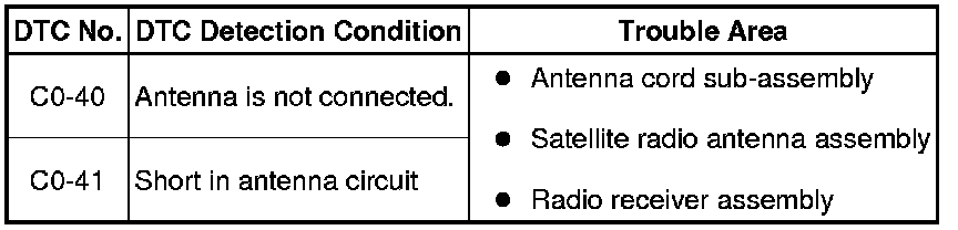 AUDIO / VIDEO: AUDIO AND VISUAL SYSTEM: C0-40, C0-41: Antenna not Connected