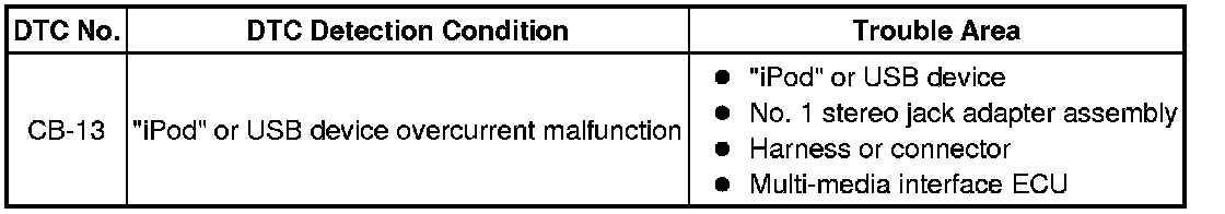 AUDIO / VIDEO: AUDIO AND VISUAL SYSTEM: CB-13: USB Over Current Detection