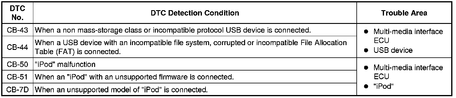 AUDIO / VIDEO: AUDIO AND VISUAL SYSTEM: CB-43, CB-44, CB-50, CB-51, CB-7D: USB Device Class/Protocol Error