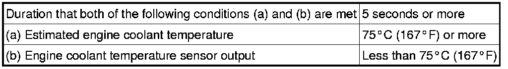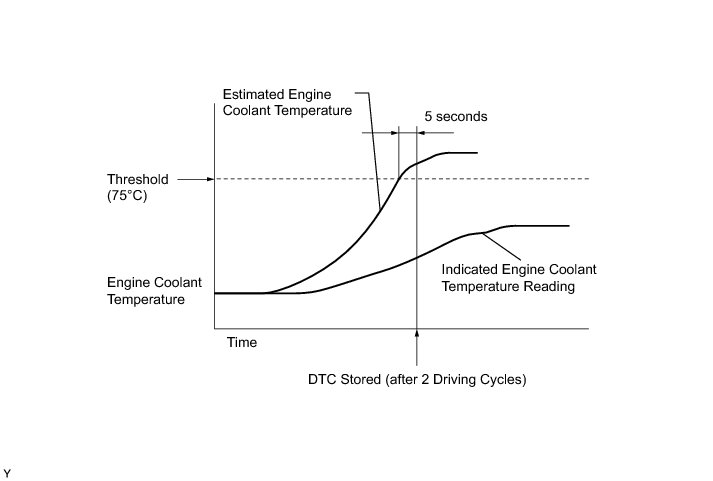 This DTC is set when the engine coolant temperature does not reach 75°C (167°F) despite sufficient engine warm-up time having elapsed.