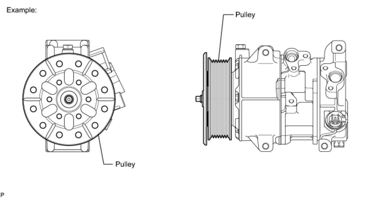 If abnormal metallic sound is heard, replace the compressor and pulley.