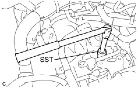 (b) Using SST, remove the back-up light switch and the gasket from the transaxle case.