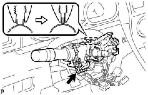(c) Disengage the claw and remove the headlight dimmer switch assembly as shown in the illustration.