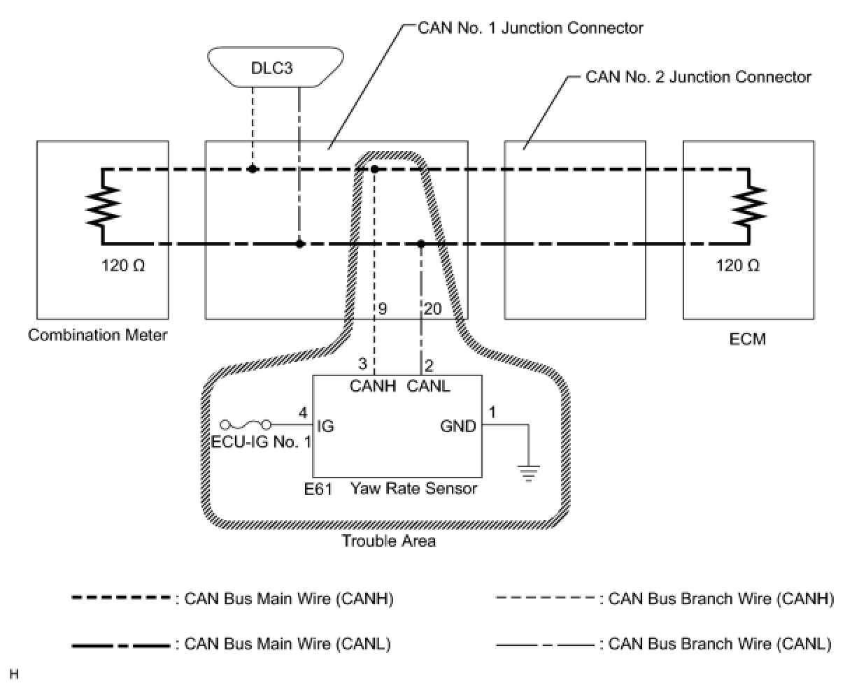 1. CHECK FOR OPEN IN CAN BUS WIRE (YAW RATE SENSOR BRANCH WIRE)