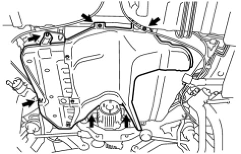 (a) Install the fuel tank protector sub-assembly with the 4 bolts and 2 nuts.