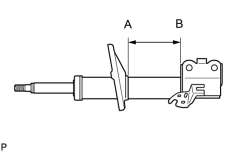 (a) Position the front shock absorber assembly level with the piston rod fully extended. Using a drill, make a hole in the cylinder between A and B shown in the illustration to discharge the gas inside.