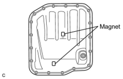 (c) Remove the 2 transmission oil cleaner magnets from the oil pan.
