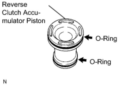 (b) Remove the 2 O-rings from the reverse clutch accumulator piston.