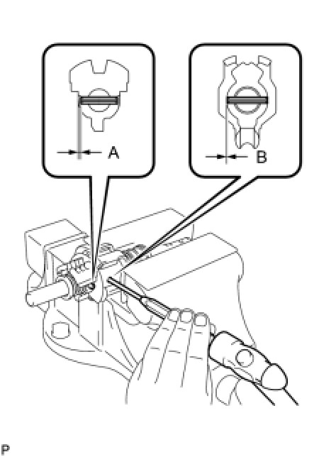 (d) Using a pin punch (dia 5 mm) and a hammer, install the 2 shift inner lever slotted pins to the shift and select lever shaft.