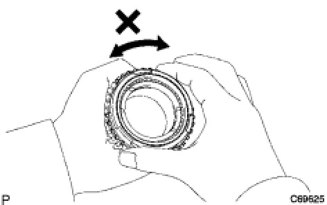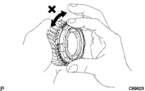 (a) Coat the 3rd gear cone with gear oil. Turn the synchronizer outer ring in one direction while pushing it against the 3rd gear cone. Check that the ring locks.