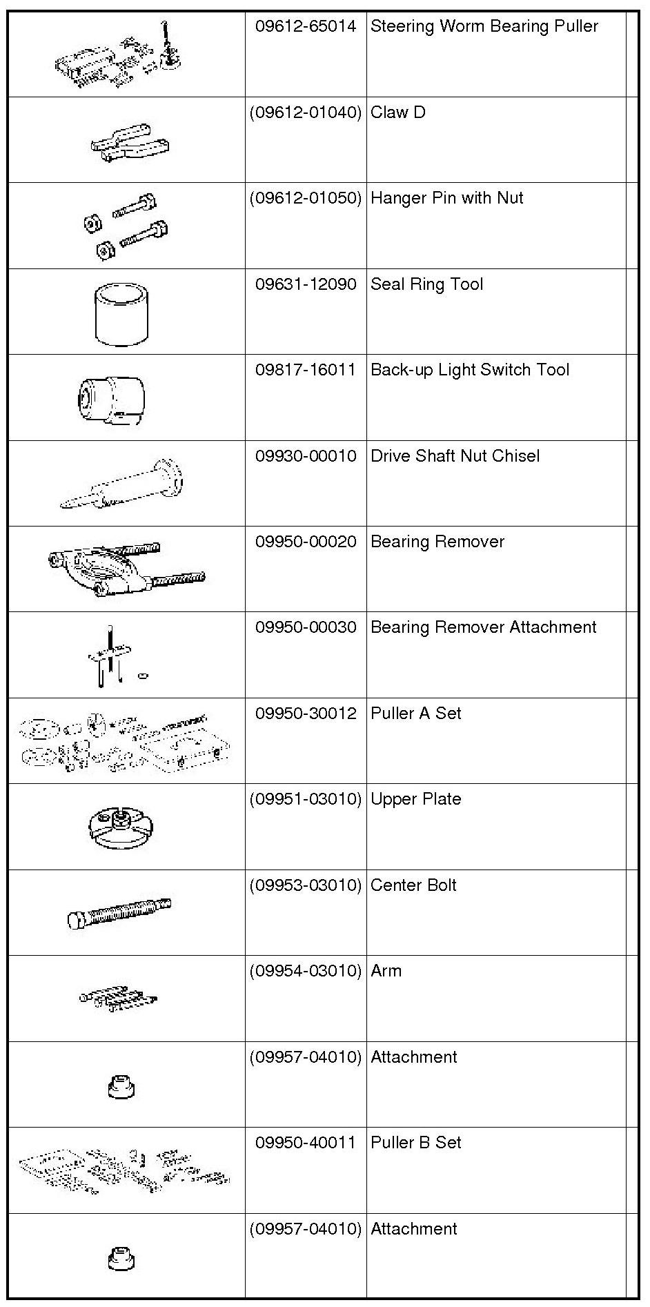 PREPARATION: E351 MANUAL TRANSMISSION / TRANSAXLE: SST