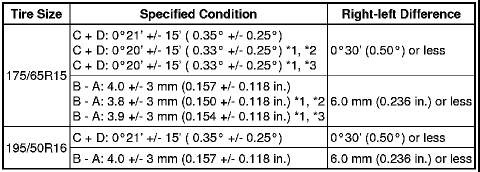 Standard values indicated by *1 in the specification tables are for vehicles with a white identification mark on the bottom of the rear coil spring.